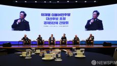[서울=뉴스핌] 국회사진취재단 = 이재명 더불어민주당 대선 후보가 8일 오전 서울 중구 대한상공회의소에서 열린 경제5단체장과- 2025.05.08 13:22