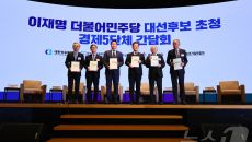 이재명 더불어민주당 대선후보는 8일 서울 중구 대한상의회관 국제회의장에서 열린 '대선후보 초청 경제5단체장 간담회'에서 "앞으- 2025.05.08 12:00