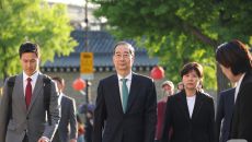 [포토]김문수 후보와 회동하기 위해 들어서하는 한덕수 후보