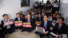 행안위 앞 이재명 면죄입법 규탄 피켓 든 與