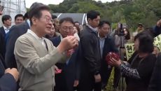 이재명 “검찰 또 불려가”…지지자가 건넨 대추즙에 ‘멈칫’