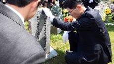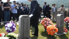 한주호 준위 묘역에서 눈물 흘리는 김문수 후보