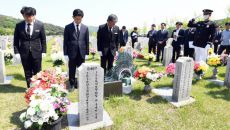 [대전=뉴스핌] 최지환 기자 = 김문수 국민의힘 대선후보가 12일 대전 유성구 국립대전현충원을 찾아 제2연평해전 전사자 묘역을- 2025.05.12 16:15