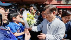 꽃다발 선물받는 이재명