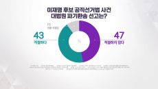 이재명 대법 선고 적절 43% vs 부적절 47%...57%는 "대선 영향 있다"