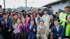 이재명 후보, 장수군 오옥마을 주민들과 기념 촬영