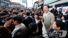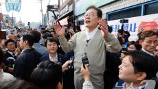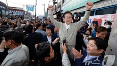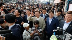 이재명 후보, 구름 인파 속 인사