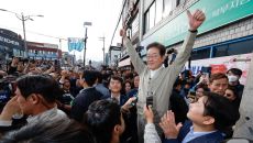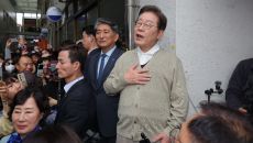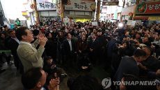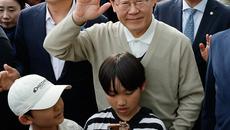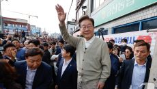 이재명 후보, 구름 인파 속 인사