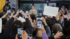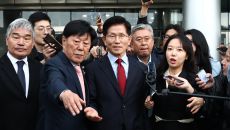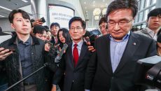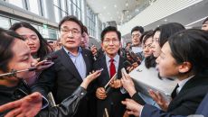 '단일화 갈등' 취재진에 둘러 싸인 김문수