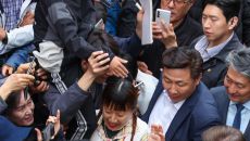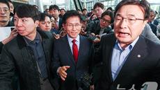 단일화 갈등 속 취재진에 둘러 싸인 김문수