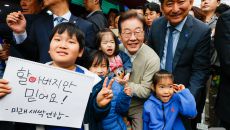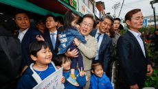 아이 안아든 이재명 후보