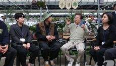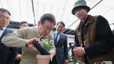 (보은=뉴스1) 안은나 기자 = 이재명 더불어민주당 대통령 후보가 '골목골목 경청투어'에 나선 6일 충북 보은군 화훼농원 숨결- 2025.05.06 13:06