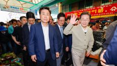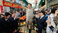 이재명, 증평 장뜰시장 찾아 '엄지 척'
