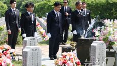 제2연평해전·연평도 포격전 전사자 묘역 참배하는 김문수 후보
