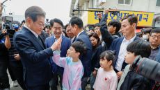 어린이와 하이파이브하는 이재명