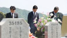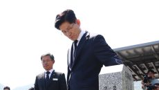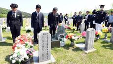 아시아투데이 송의주 기자 = 김문수 국민의힘 대선 후보가 12일 대전 유성구 국립대전현충원을 찾아 한주호 준위 묘역을 참배하고- 2025.05.12 15:13