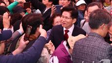 지지자들과 인사하는 김문수 후보