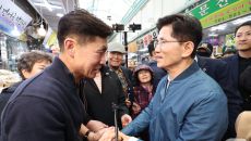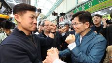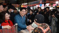 김문수 대선후보 방문에 인파 몰린 의정부 제일시장
