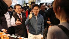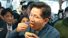 [의정부=뉴스핌] 이형석 기자 = 김문수 국민의힘 대통령 후보가 4일 오후 경기 의정부시 제일시장을 방문해 알곤이찜을 시식하고- 2025.05.04 18:24