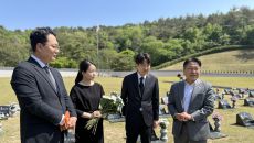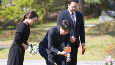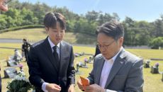 고 정동년 이사장 묘소 참배하는 이준석 후보