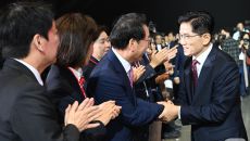 [포토]국힘 지도부들과 인사하는 김문수 대선 후보