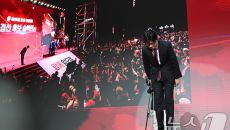 (고양=뉴스1) 김민지 기자 = 김문수 국민의힘 대선 경선 후보가 3일 경기 고양시 킨텍스에서 열린 5차 전당대회에 입장하며- 2025.05.03 18:12
