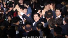 두 손 들어 감사인사하는 한동훈 후보