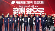 (고양=뉴스1) 이광호 기자 = 김문수 국민의힘 대통령 후보가 3일 오후 경기 고양시 킨텍스에서 열린 5차 전당대회에서 최종- 2025.05.03 16:55