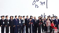 한동훈과 화합 메시지 적는 김문수