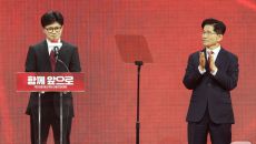 김문수 향해 손뼉치는 한동훈