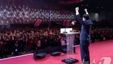 (고양=뉴스1) 김민지 기자 = 김문수 국민의힘 대통령 후보가 3일 오후 경기 고양시 킨텍스에서 열린 5차 전당대회에서 최종- 2025.05.03 16:54