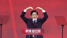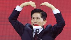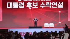 수락 연설하는 김문수 후보, 당원들 향한 하트