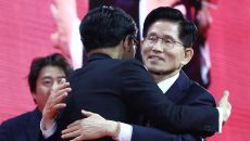 김문수 '두팔 번쩍' 한동훈 '박수'