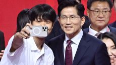 국민의힘 김문수 대선 후보가 3일 경기 일산 킨텍스에서 열린 제5차 전당대회에서 청년 당원들과 기념촬영을 하고 있다. <ⓒ투자- 2025.05.03 16:28