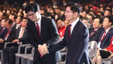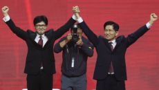 [포토]손 잡은 한동훈-김문수 국민의힘 대선 경선 후보