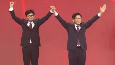 대통령 최종 후보 전당대회서 만난 김문수·한동훈