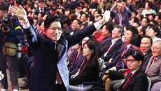 아시아투데이 이병화 기자 = 한동훈 국민의힘 대선 경선 후보가 3일 경기 고양시 킨텍스에서 열린 5차 전당대회에 입장하고 있다- 2025.05.03 14:57