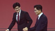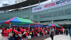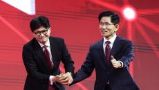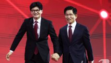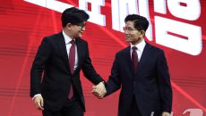 [르포]"24평에 사는 정직한 사람" VS "고인물 버려야"…김문수·한동훈 지지자들 기싸움