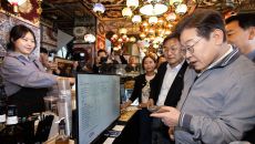 이재명 '강릉카페거리 찾은 시민 향해 엄지척'