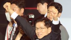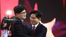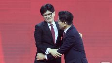 [포토]손 잡은 한동훈-김문수 국민의힘 대선 경선 후보