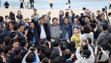 (강릉=뉴스1) 이재명 기자 = '골목골목 경청투어 : 동해안벨트편'에 나선 이재명 더불어민주당 대통령 후보가 3일 오후 강원- 2025.05.03 14:39