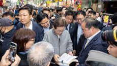이재명 후보 측 “피습 모의 제보 잇따라…대인 접촉 어려워”, 악수 대신 눈인사만