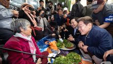 이재명, 인제 원통시장 찾아 상인과 소통