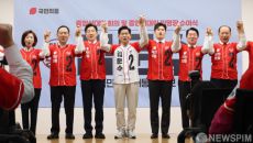 [서울=뉴스핌] 최지환 기자 = 김문수 국민의힘 대선 후보와 중앙선대위 위원장들이 12일 오전 서울 영등포구 여의도 국민의힘- 2025.05.12 13:20