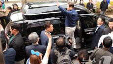 지지자들에게 인사하는 이재명