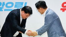 악수하는 유동규·김문수