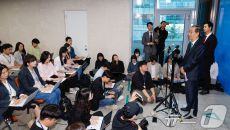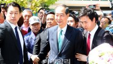 [포토]한덕수 전 국무총리에게 쏠린 관심