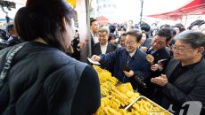 (철원=뉴스1) 이재명 기자 = '골목골목 경청투어 : 접경벨트편'에 나선 이재명 더불어민주당 대통령 후보가 2일 오전 강원- 2025.05.02 10:34