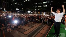 이준석, 광화문서 출정식…"오렌지색 물결로 대한민국 바꿔야"