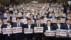 '사법쿠데타, 대법원 규탄' 구호 외치는 민주당 의원들 [뉴시스Pic]